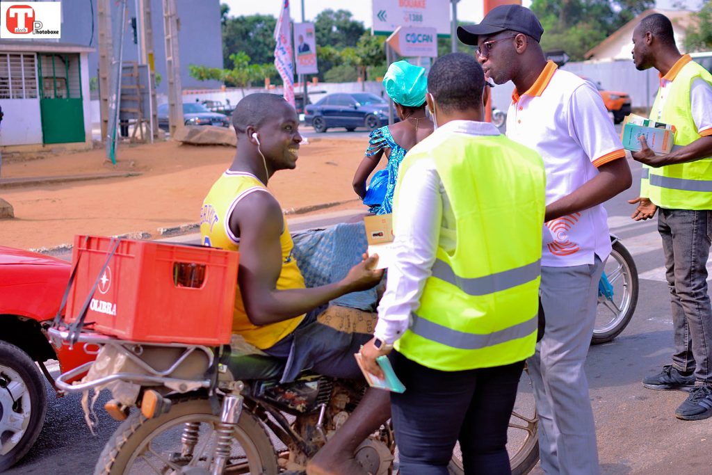 De l’espace du feu tricolore « Donald » jusqu’à la pharmacie Kodjo, en passant par le centre commercial de Bouaké, les jeunes du RJDCI ont multiplié les échanges avec les usagers. Motocyclistes, conducteurs de tricycles, automobilistes, vendeurs de téléphones et commerçants ont été sensibilisés aux règles élémentaires de prudence.